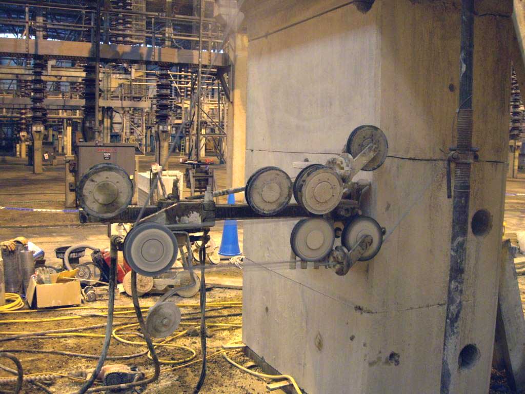 Tecnica indicata per sezionare manufatti di forte spessore o per applicazioni particolari, aperture circolari di grande diametro. Un cavo in acciaio di lunghezza variabile sul quale vengono fissate perline diamantate viene fatto girare ad alta velocità e contemporaneamente tirato da un apposito sistema. Non ci sono limiti teorici agli spessori che possono essere tagliati.